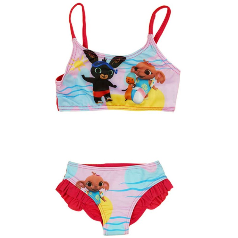 Bing nyuszi, a kislányok kedvence, most egy igazán stílusos, kétrészes fürdőruhán is megjelenik! Egész nyáron végigkíséri a kis hercegnőket a strandon vagy a medencében. A fürdőruha élénk rózsaszín színe igazán divatos, a Bing nyuszi mintával pedig garantáltan minden kislány kedvence lesz. Az 85% poliészter és 15% elasztán anyagösszetételnek köszönhetően a fürdőruha gyorsan szárad, jól tart és kényelmes viselet a nyári napokon. Az I. osztályú minőség garancia a hosszú élettartamra. A terméket a megbízható és minőségi termékeiről ismert Andrea Kft. forgalmazza Magyarországon.