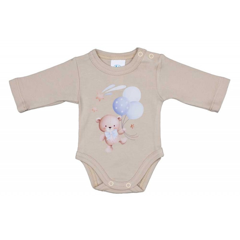 Kisbabák ruhatárának praktikus alapdarabja a body. Ez a cuki macis mintával nyomott baba body minőségi, bababarát 100% pamut anyagból készült, szín- és formatartó anyagból, ami jól bírja a gyakori mosást is. Vállán patentos, így megkönnyíti a baba öltöztetését. A lába közötti patentos megoldás, pedig a gyors peluscserét teszi lehetővé.
