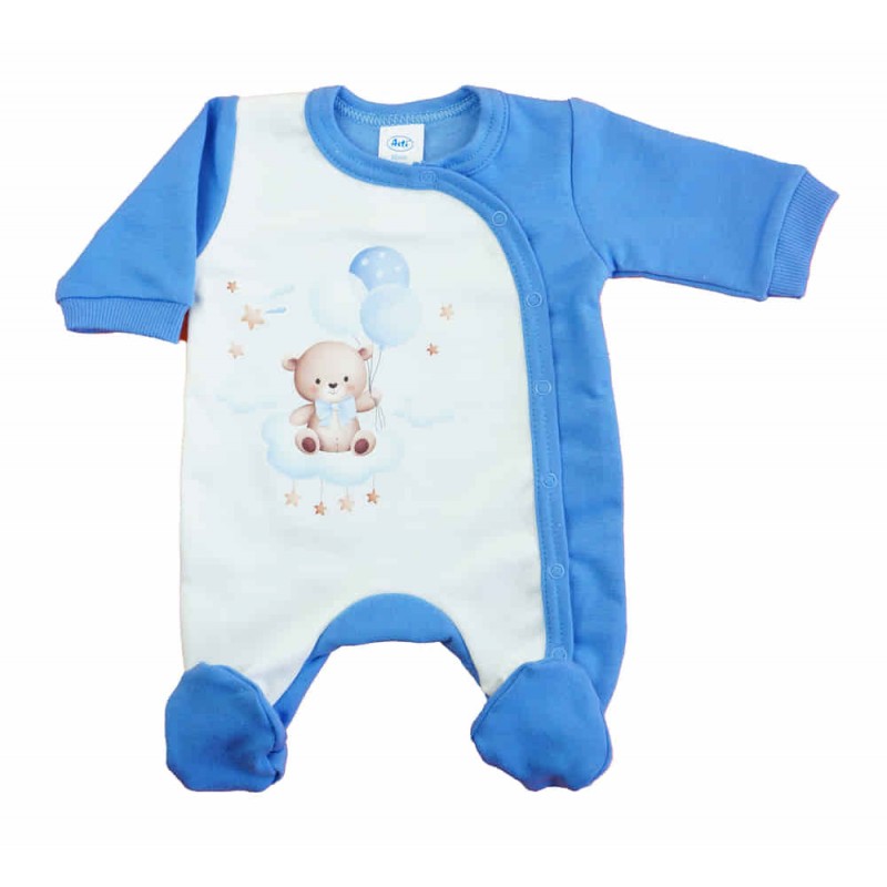 Belül bolyhos elöl patentos hosszú ujjú baba rugdalózó macis mintával