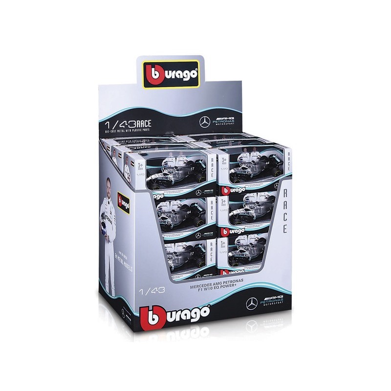 Pattanj be Lewis Hamilton mellé! A Bburago versenyautó - 2019 Mercedes F1, 1:43 méretarányú fém kisautó modelljével végre otthonodban is átélheted a Forma-1 futamok hihetetlen sebességeit. Nem csak strapabíró a járgány, de valósághű másolata is az eredeti kocsinak. Játssz hát vele, vagy tedd gyűjteményed közé ezt a szürke és kék színekben pompázó járművet! A Bburago versenyautó - 2019 Mercedes F1, 1:43 termék méretei: 10 x 4 x 3 cm. A játékot 3 éves kortól ajánljuk.