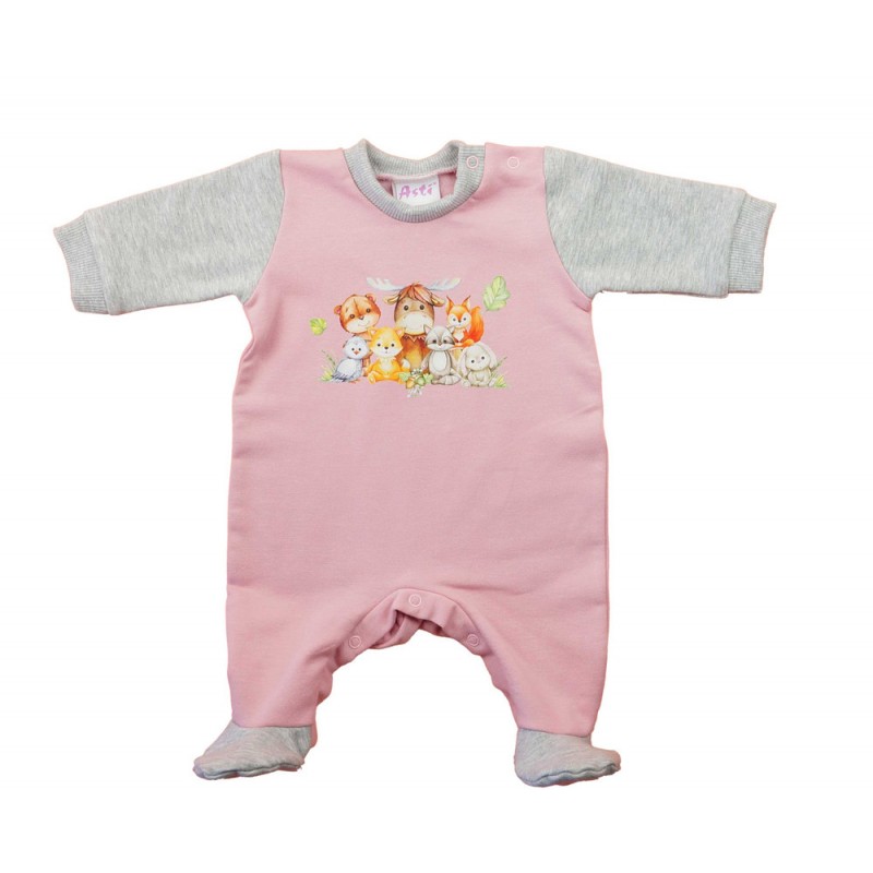 Belül bolyhos, hosszú ujjú baba rugdalózó – Állatos mintával