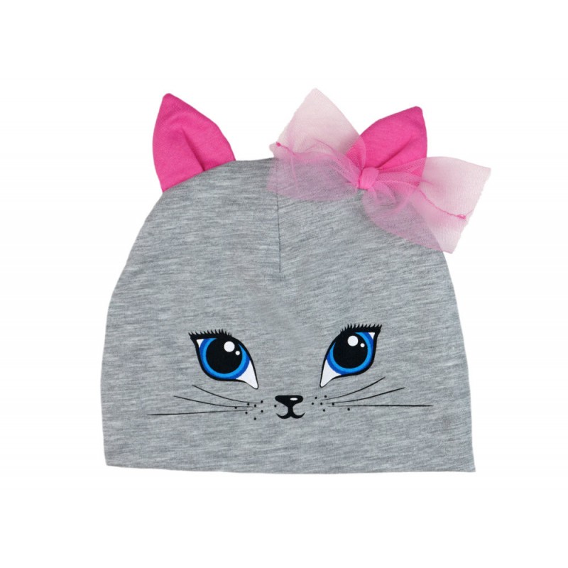 Cicás mintával nyomott, tüllös masnival díszített lányka sapka