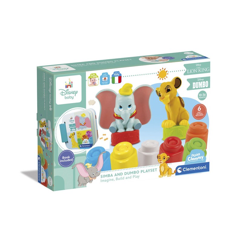 A gazdag Clemmy játékkészlet két Disney Klasszikus karaktert és egy színes, képekkel teli könyvet tartalmaz, amely segít elmesélni a történeteiket és kalandjaikat. Tartalmaz 6 db puha Clemmy építőkockát, amelyekkel gyermeked teljes biztonságban élvezheti a kézügyesség fejlesztését. Az illusztrált könyvet úgy tervezték, hogy ösztönözze a képzeletüket, és lehetővé tegye a gyermek számára, hogy rengeteg történetet alkosson. A sok élénk szín segíti a vizuális észlelést és a megfigyelőképességet. A Clemmy biztonsága: a puha, összenyomható építőkockák, amelyek könnyen mosogatógépben tisztíthatók.
