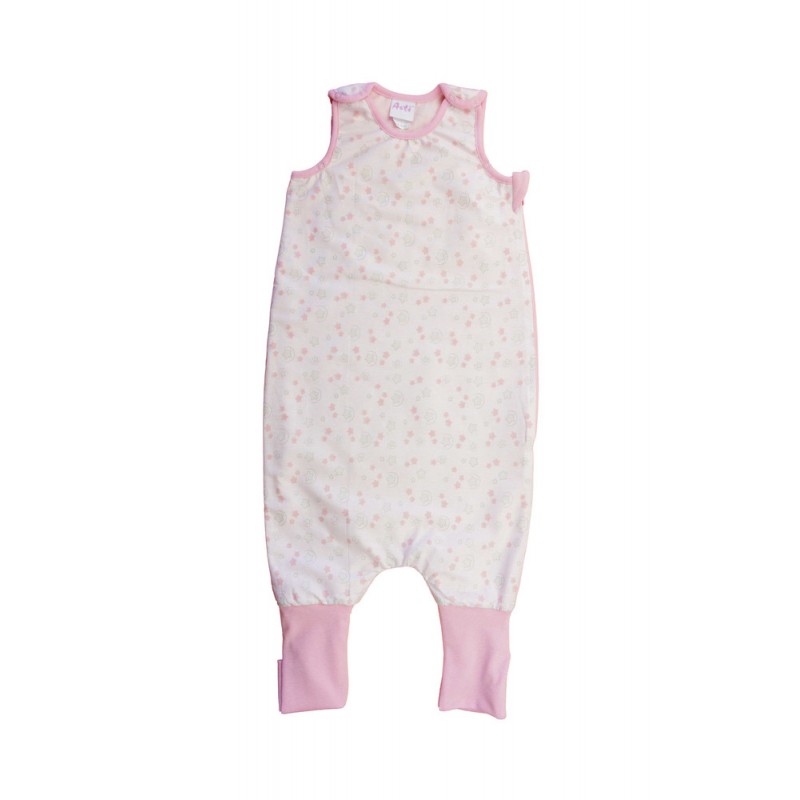A vállon patentos és oldalt cipzáros megoldás megkönnyíti az öltöztetést, míg a felhajtható lábrész lehetővé teszi, hogy a kicsi szabadon totyogjon, majd alvás után melegen tartsa a lábát. A külső, vászon anyag légáteresztő és kellemes tapintású, a bélés pedig puha melegséget ad a hidegebb éjszakákon.