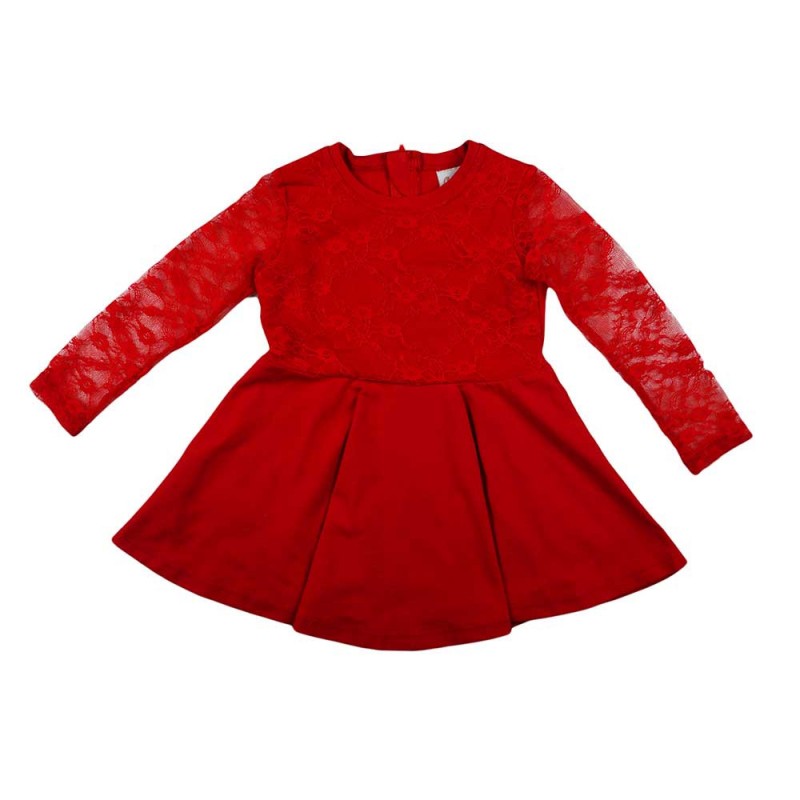 Az ünnepi alkalmak elengedhetetlen kelléke ez a piros, csipke betétes hosszú ujjú lányka ruha, amelyben kislányod igazán különlegesnek fogja érezni magát. Az aprólékosan megmunkált csipke betétek finom, elegáns megjelenést kölcsönöznek a ruhának. A hátul található cipzár megkönnyíti a fel- és levételt, míg az elasztikus pamut anyag biztosítja a kényelmet és a mozgásszabadságot. A 90% pamut és 10% elasztán összetételű anyag pedig garantálja a hosszan tartó szín- és formamegőrzést. Minőségi magyar termék, amelyben a kislányod boldogan fogja várni az ünnepi alkalmakat. Minőség: I. osztály.