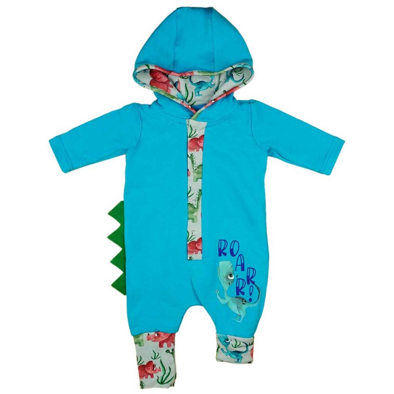 Ez a dinós kapucnis hosszú ujjú overál remek választás a kisfiúk számára, akik szeretnek játszani és felfedezni. A kék színű overál kényelmes viselet, amelyben a picik könnyedén mozoghatnak, legyen szó akár benti, akár kinti tevékenységről. A ruhanemű lábszáránál található dupla passzé hosszabb ideig biztosítja a tökéletes méretet, hiszen segítségével az overál együtt nő a gyermekkel. A vagány dinó taraj a ruhadarab oldalán igazán egyedivé teszi ezt a darabot. Minőségi magyar terméket kínálunk, amely 100% pamutból készült, így garantáltan bőrbarát az érzékeny baba bőr számára is. Az overál I. osztályú minőségű, így nem csak a stílus, de a minőség is garantált.