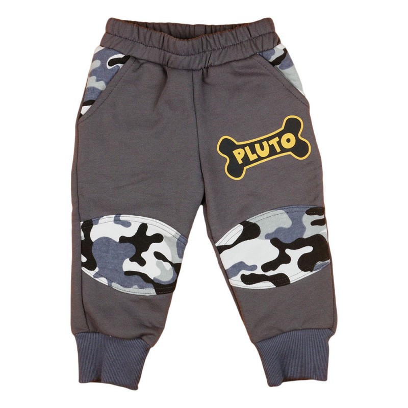 Pluto felirattal nyomott, terepmintás anyaggal kiegészített, zsebekkel ellátott, belül bolyhos nadrág