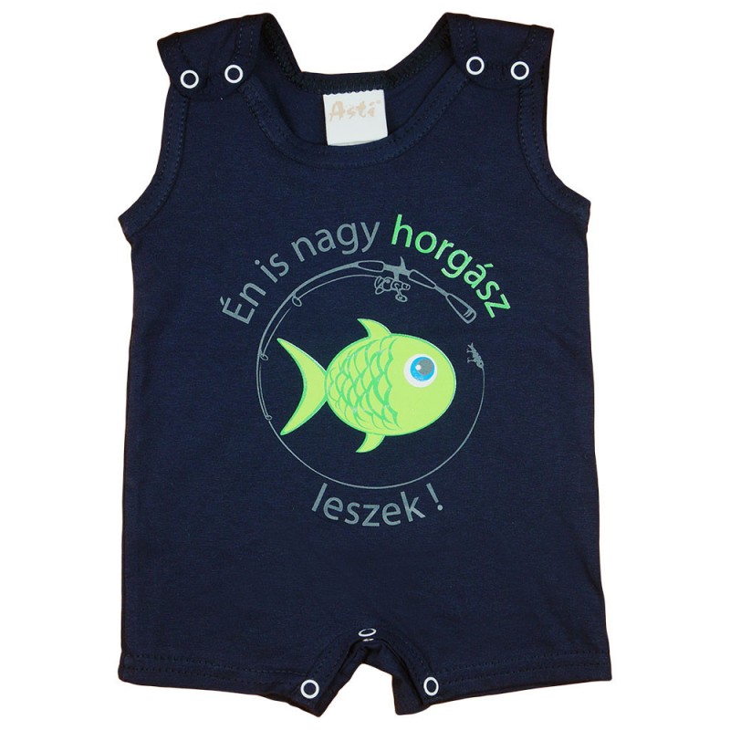Édes kis horgászodnak tökéletes választás ez a szuper kényelmes, ujjatlan napozó, melyet a "Én is nagy horgász leszek" felirattal és aranyos halacska mintával díszítettünk. A vállnál található patentos megoldásnak köszönhetően egyszerűen felvehető és levehető, így a pelenkázás sem jelent majd gondot. A termék 100% pamutból készült, így garantáltan puha és kényelmes viseletet biztosít a meleg nyári napokon. Az I. osztályú minőség és a nikkelmentes patent gondoskodik arról, hogy a termék ne okozzon allergiás reakciót a babáknál. A napozó kék színben pompázik, ami tökéletesen passzol minden kisfiúhoz. Büszkén mondhatjuk, hogy ez a termék magyar gyártású. Válaszd ezt a napozót, hogy kisfiad is részese lehessen a nagy horgászélménynek már egészen kis korától!