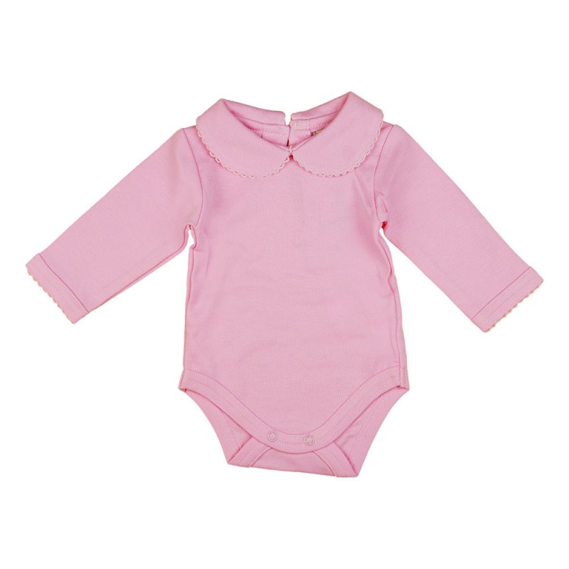 Galléros hosszú ujjú baba body rózsaszín