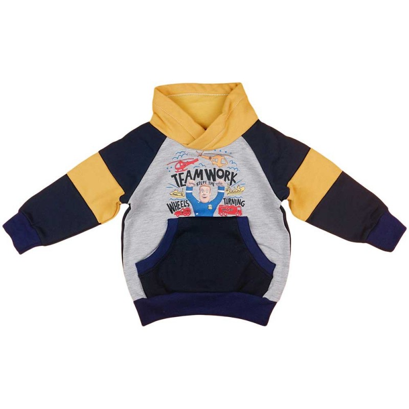 Ezzel a belül bolyhos Sam a tűzoltó mintás pulóverrel a kicsi fiúk igazán bátor tűzoltónak érezhetik magukat! A pulóver világos sárga színű, amelyen vidám Sam a tűzoltó minta látható, így a hideg napokon is melegséget és vidámságot csempész a mindennapokba. A pulóver belső oldala finom, bolyhos anyaggal van bevonva, amely garantáltan melegen tartja a kicsiket, míg a kenguruzseb és a magasított nyakú kialakítás extra kényelmet biztosít. A pulóver 65% pamut és 35% poliészter anyagból készül, minőségi magyar termék, az Andrea Kft. gyártásában. A pulóver I. osztályú, így biztos lehet benne, hogy gyermekének csak a legjobbat adja!