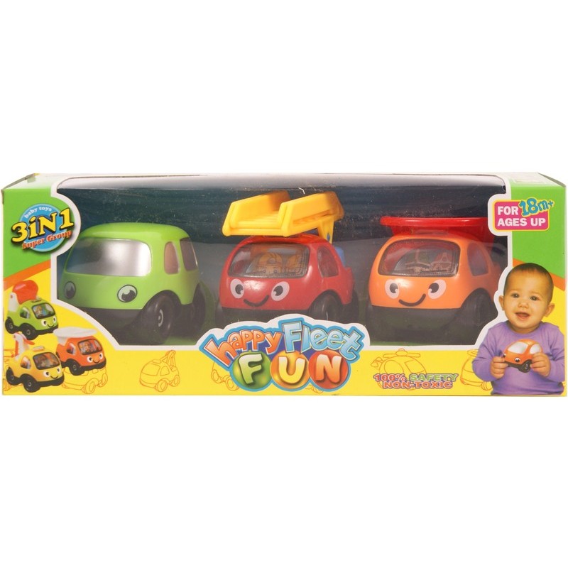 Piciknek készült színes kisautók, vidám mosollyal! A Happy Fleet bébiautó 3 darabos készlet buborék formájú műanyag kisautókat rejt magában, amik azonnal felkeltik a baba figyelmét. Az autók tologathatók, a járgányok mozgásra ingerlik a babát, miközben a kreatív gondolkodást, a megfigyelést és a kézügyességet is fejlesztik. A kisautók együtt használhatók más bébi autókkal, autópályákkal is. A Happy Fleet bébiautó 3 darabos készlet autók mérete: 8 cm.