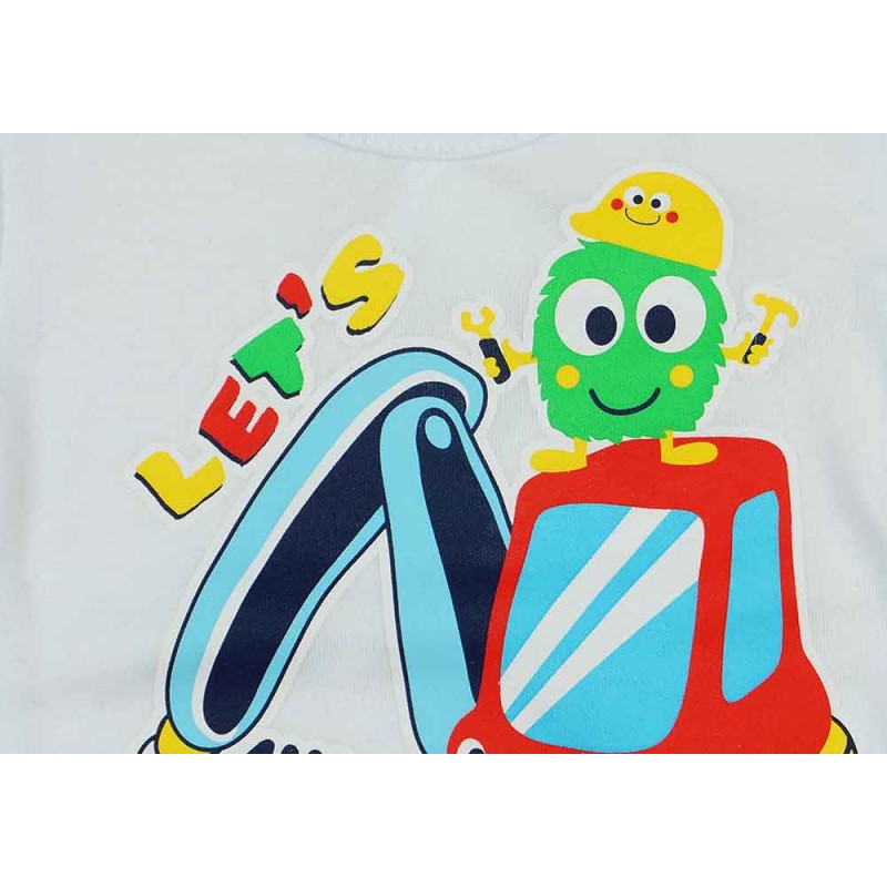 Munkagépes mintával nyomott, hosszú ujjú, vállon patentos pamut baba body.