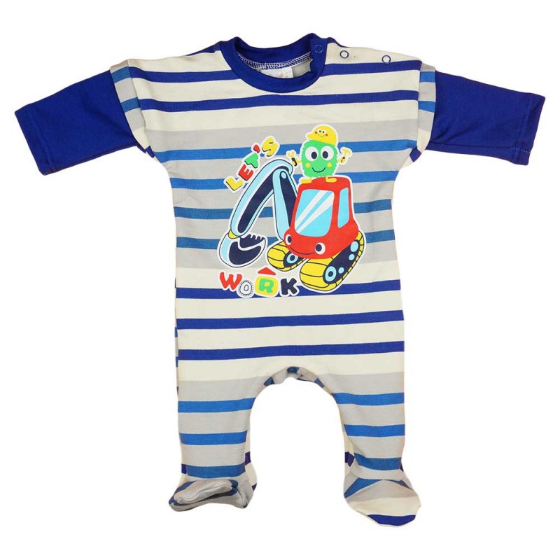 Hosszú ujjú, belül bolyhos baba rugdalózó munkagépes mintával