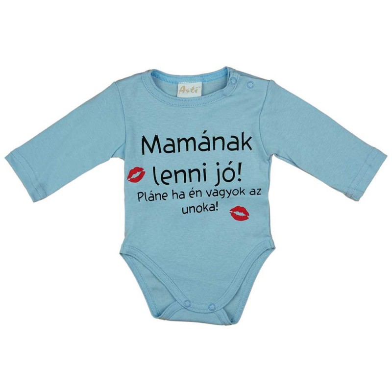 Kisbabák ruhatárának praktikus alapdarabja a body. Ez a vicces felirattal nyomott baba body minőségi, bababarát 100% pamut anyagból készült, szín- és formatartó anyagból, ami jól bírja a gyakori mosást is. Vállán patentos, így megkönnyíti a baba öltöztetését. A lába közötti patentos megoldás, pedig a gyors peluscserét teszi lehetővé.
