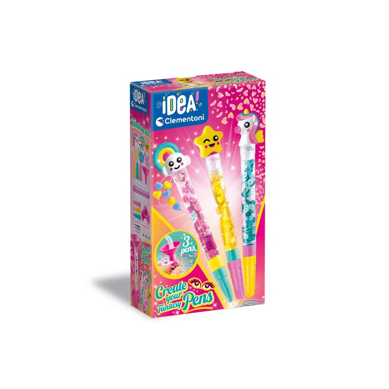 IDEA Tollkészítő készlet - Fantázia Egy eredeti kreatív IDEA készlet, amellyel 3 tollat állíthatsz össze, és különböző fantáziadús díszítésekkel személyre szabhatod őket. Egy praktikus és gazdag készlet, amely a következőket tartalmazza: 3 toll, 4 különböző színű tinta, 3 figura és az elkészítéshez szükséges összes eszköz. Egy új játék, amely lehetővé teszi a gyermekek számára, hogy megalkossák és megszemélyesítsék tollukat rengeteg kiegészítővel és díszítéssel. A gyermekek sokkal többet tehetnek, mint csak megszemélyesíteni egy tollat: a képzeletük szabadjára engedésével alkothatnak.