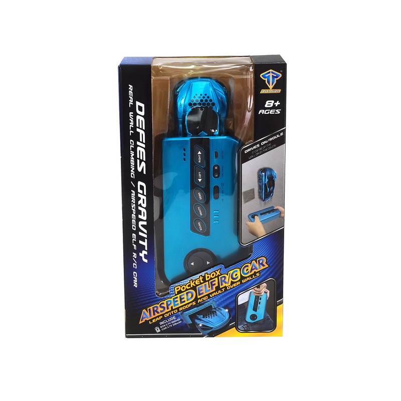 Pocket Box Airspeed Elf R/C Car falmászó távirányítós autó Ez a különleges, falra mászó távirányítós autó nemcsak a padlón, hanem a falakon és akár a mennyezeten is száguld. A kompakt méretének köszönhetően bárhová magaddal viheted, a beépített távirányító pedig egyben a praktikus tároló is, így sosem veszik el. Miért különleges? Falmászó technológia szívóhatással tapad a falra és a plafonraKompakt méret a távirányítóban tárolhatóTölthető akkumulátor az autóbanMinden irányba mozgatható előre, hátra, balra, jobbraLátványos dizájn és színek Működés Autó: Beépített újratölthető akkumulátor (USB kábellel tölthető) Távirányító: 6 db AA elem (nem tartozék) Méret és anyag Autó hoss