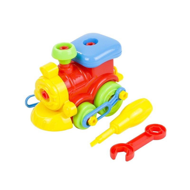 Szerelj össze egy szép gőzmozdonyt csavarhúzóval és villáskulccsal! A szerelhető jármű - vonat készletben egy színes, szétszedhető műanyag mozdonyt találsz, szerszámokkal. A csavarozást el tudod sajátítani a készlettel, a játék nagyon jól fejleszti a kézügyességet. Vonat összerakott méretei: 14 x 11 x 11 cm.