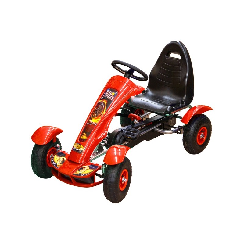 Tűzpiros gokart, amivel a parkban tudsz versenyezni! piros Pedálos gokart egy fém vázzal, műanyag üléssel és kormánykerékkel, műanyag kerekekkel készült stabil négykerekű járgány, amivel a parkban száguldozhatsz. A gokart láncos hajtással készült, az ülés távolsága állítható, a pedálokkal miközben hajtod a gokartot, erősödnek a lábaid. A kék gokart egy kézifékkel is fel van szerelve, amivel pillanatok alatt meg tudsz állni. A piros Pedálos gokart méretei: 95 x 61 x 58 cm. Maximális terhelhetőség: 50 kg.