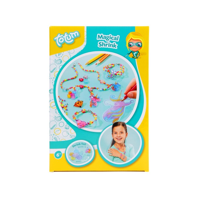 Gyárts nyakláncokat, karkötőket zsugorfólia felhasználásával! A Totum Fólia ékszer készítő készlettel hőre zsugorodó fóliákból tudsz készíteni medálokat, amiket madzagra tudsz fűzni, gyöngyök és ékkövek mellé. Először rajzold meg a medálok mintáját, ezután húzd rá a fóliát, és tedd a medálokat a sütőbe pár percre, hogy a fólia összezsugorodjon a hő hatására. Közben fel tudod fűzni a madzagokra a gyöngyöket, végül pedig akaszd rá a medált, hogy elkészüljenek az ékszerek! A Fólia ékszer készítő készlettel barátság karkötőket is alkothatsz!