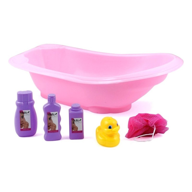 Fürdesd meg a játékbabád, kend be illatos krémekkel! A Dolls World Babakád kiegészítőkkel egy nagyobb méretű rózsaszín babakád, amiben tisztára tudod csutakolni a játékbabáid! A kádban szivacsot, samponos, krémes és babaolajos flakont is találsz, fürdés közben a baba egy sárga kacsával is tud játszani. A kádat fel lehet tölteni vízzel, és egy dugóval le is lehet ereszteni, ha már elég volt a babának a habfürdőből. A Babakád kiegészítőkkel együtt használható minden 41 cm-es játékbabával! Méretek: 43 x 24 x 14 cm.