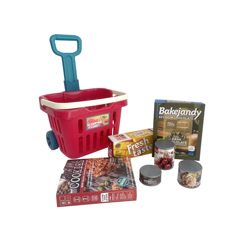 Húzható bevásárlókocsi játék élelmiszerekkel