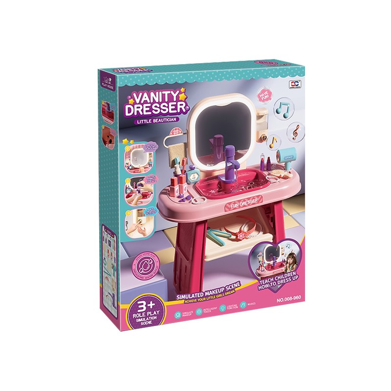 Fésülködőasztal fénnyel, zenével és vízzel