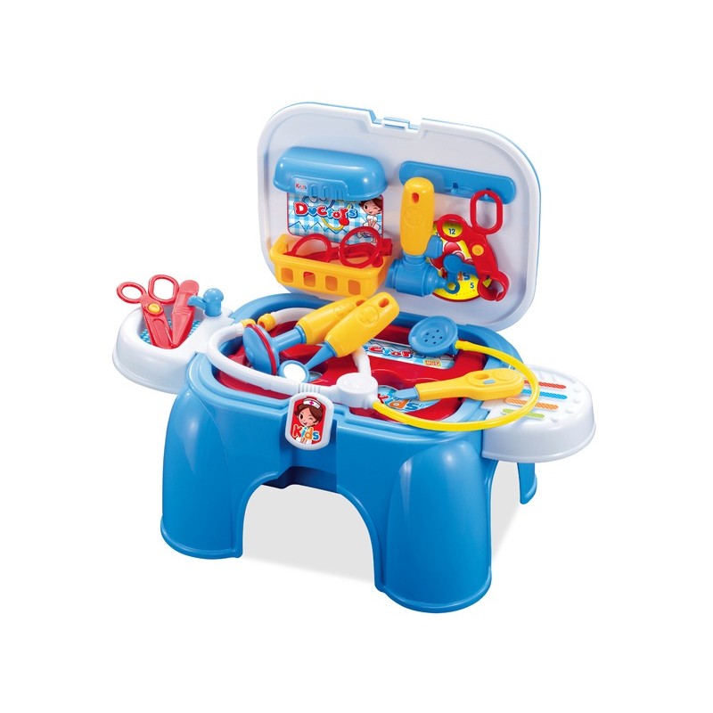 Ültesd le a beteget, vizsgáld és gyógyítsd meg! Az Orvosi készlet ülőkében mindent tartalmaz, amire egy felkészült doktornak szüksége van. A műanyag eszközökkel meg tudod vizsgálni a pácienst, a sztetoszkóppal hallgasd meg a szívverését! A reflexeket, a lázát, a látását és a fogait is végig tudod nézni az eszközökkel, és ha sikerült rájönnöd, hogy milyen betegségben szenved, akkor elkezdheted a kezelést. Az Orvosi készlet ülőkében műanyagból készült, könnyen hordozható. Az ülőkére leültetheted a beteget, a fedelében tudod tárolni az orvosi műszereket. Méretek: 39 x 19 x 26 cm.