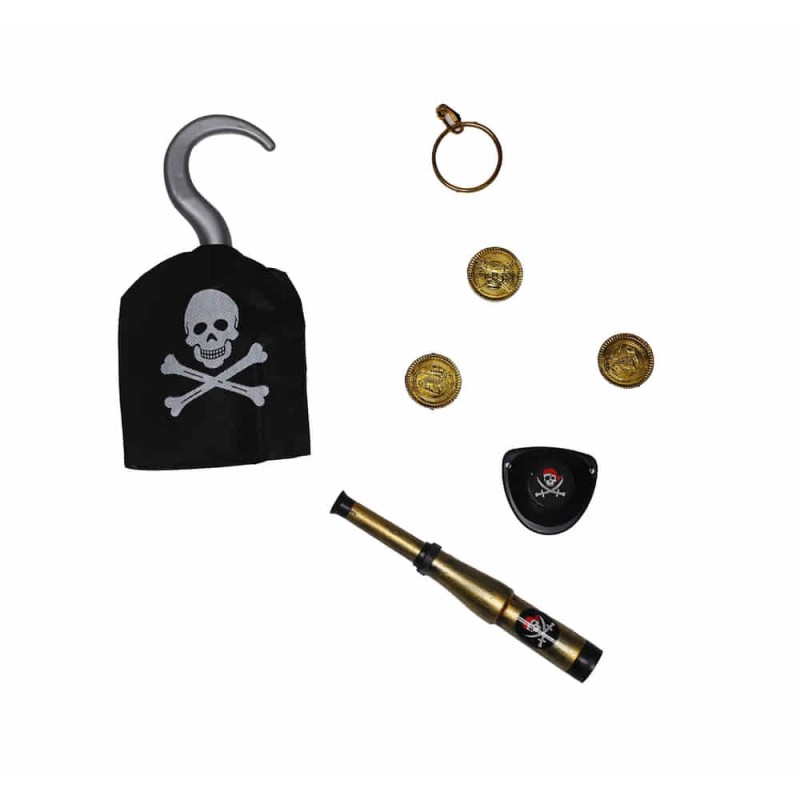 Minden kisfiú álma, hogy Kalóz lehessen, most pedig ezzel a jelmezzel ez a vágy valóra válhat! A szett tartalmaz egy halálfejes kampókezet, egy távcsövet, egy szemkötőt és kalóz érméket így tökéletesen visszaadja Hook kapitány ikonikus megjelenését, és garantáltan hatalmas sikert fog aratni a gyerkőcök körében. Hagyd, hogy gyermeked betöltse a Hook kapitány szerepét. Ebben a jelmezben bármilyen kalandra készen áll a kis kalózod!