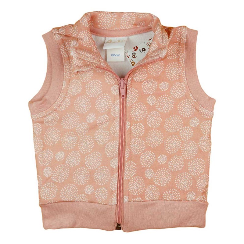 Édes kis mellény az Ön kis hercegnőjének! A púder színű, mintás mellény puha pamutból készült, amely a baba érzékeny bőrét kényezteti. Elöl cipzárral és oldalt zsebekkel rendelkezik, így kényelmes és praktikus viselet a hidegebb napokon. A mellényben a kislányok jól érezhetik magukat, miközben játszanak, pihennek vagy felfedezik a világot. A mellény 90% pamut és 10% elasztán anyagból készült, így a kényelem mellett a tartósság is garantált. Büszkék vagyunk arra, hogy ez a minőségi termék Magyarországon készült, az Andrea Kft. gyártásában. Az EU szabványoknak megfelelő minőségű, I. osztályú termék. Adja meg kislányának a legjobbat ezzel a gyönyörű, mintás mellénnyel!