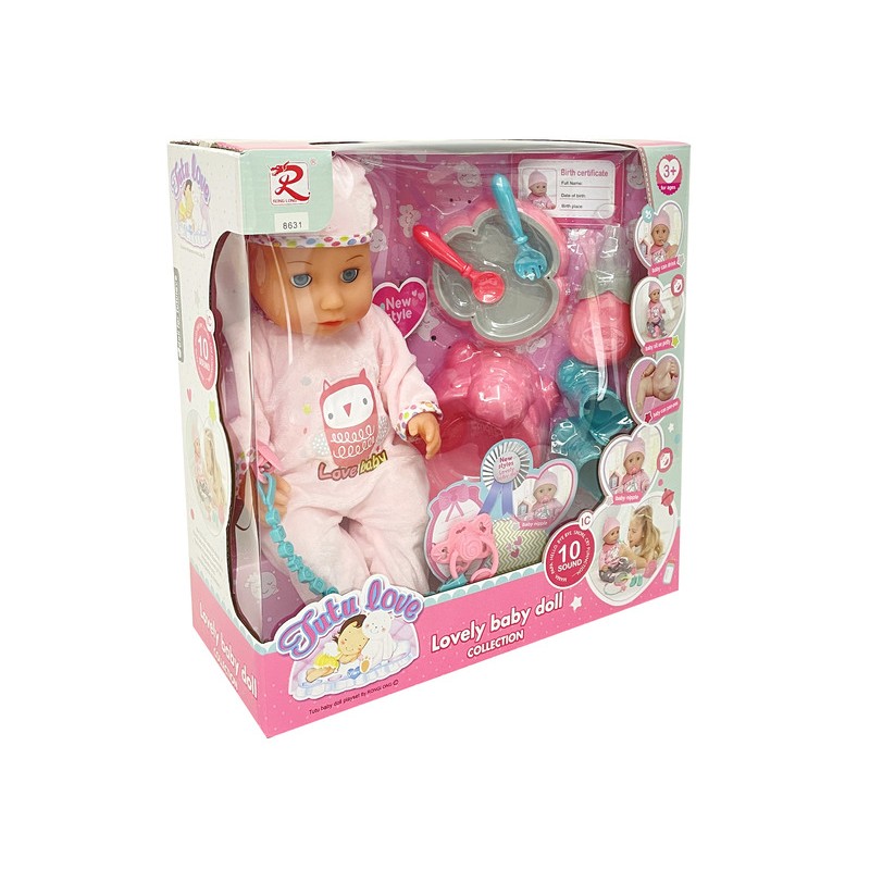 Pisilős, hangot adó lánybaba kiegészítőkkel