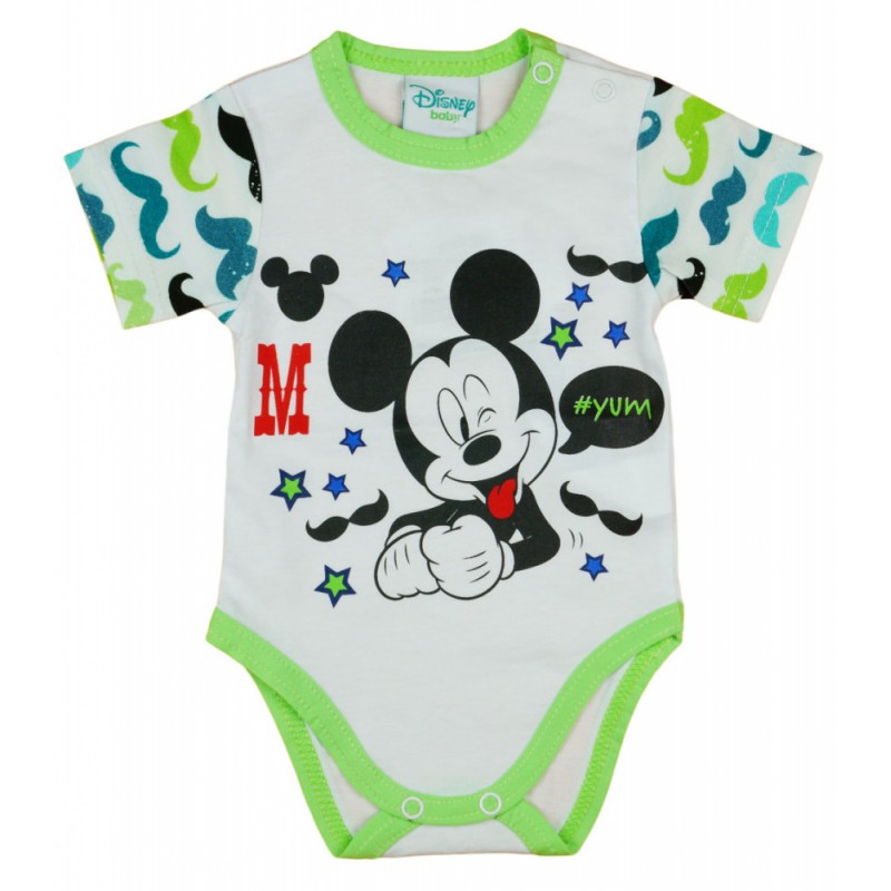 Rövid ujjú baba body bajszos Mickey egér mintával zöld