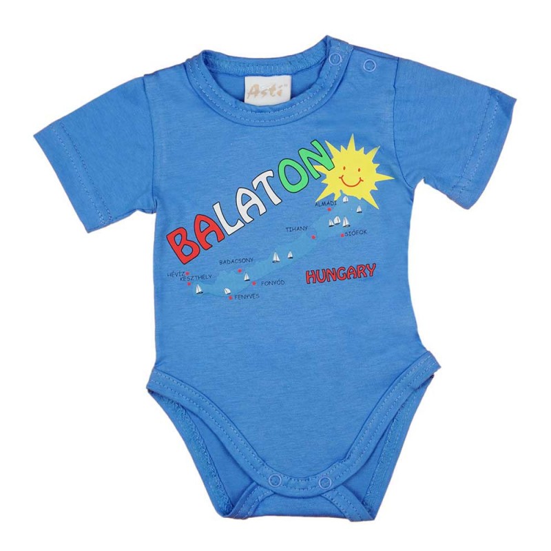 Klasszikus és praktikus egyszínű baba body minőségi, vékony, nyári 100% bababarát pamut anyagból. Vállán patentos, így könnyűvé teszi a baba öltöztetést a lába közötti patentok pedig a peluscserét gyorsítja meg. Vidám, színes BALATON felirattal és mintával.