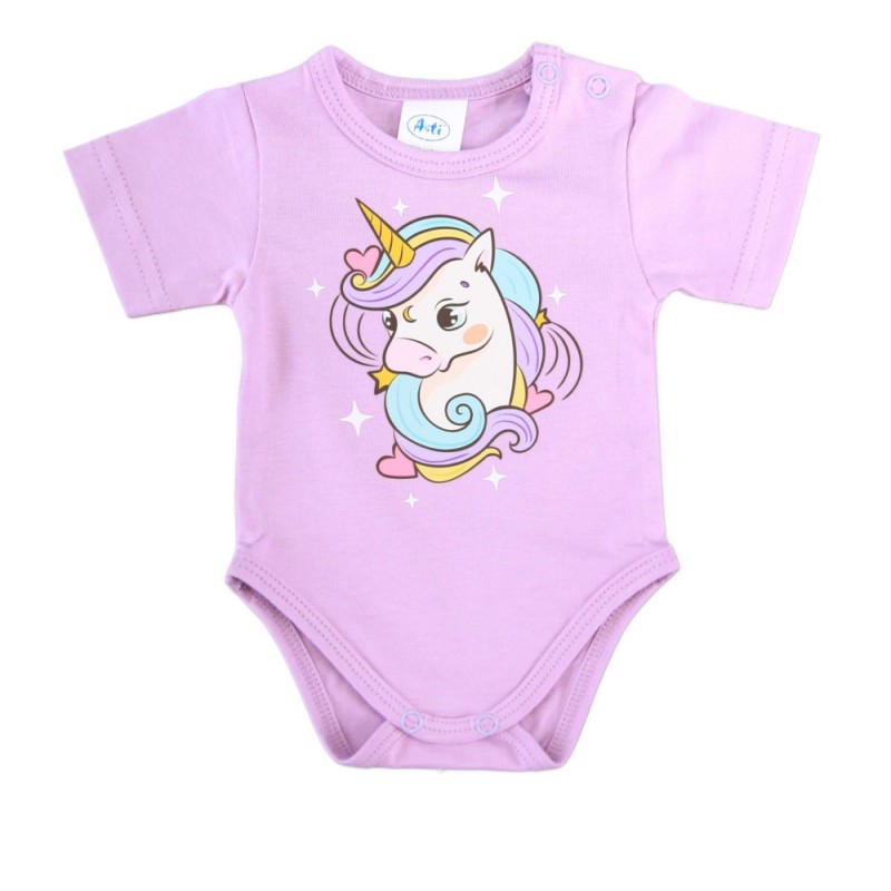 Rövid ujjú baba body cuki Unikornis mintával
