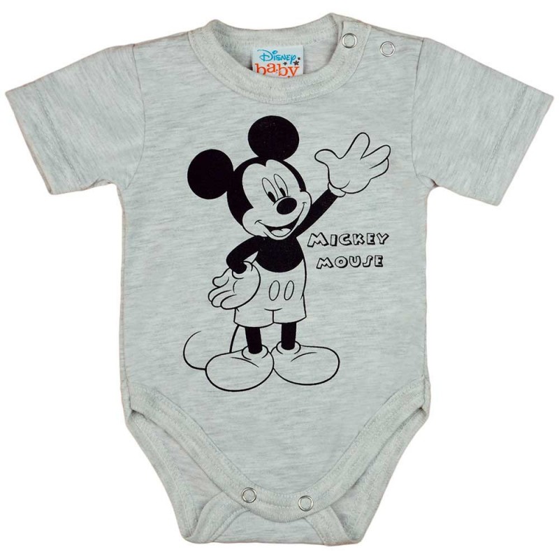 Mickey egér mintával nyomott, vállon patentos rövid ujjú baba body.