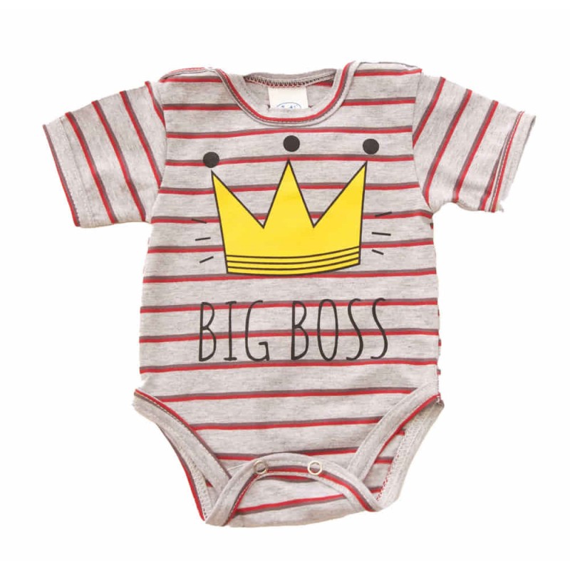 Öltöztesd kisbabádat ezzel a nagyszerű szürke csíkos, big boss feliratú bodyval! A kényelmes, rövid ujjú body vállnál mindkét oldalt patenttal ellátott, amely megkönnyíti a fel- és levételt. Az alul található dupla patent segítségével pedig könnyedén igazíthatod a méretét a gyorsan növekvő csemetéd igényeihez. A termék 100% pamutból készült, így garantálja a baba bőre számára a szükséges légáteresztést és kényelmet. Továbbá, a magyar gyártású body nikkelmentes patenttal rendelkezik, így nem okoz allergiás reakciót az erre érzékeny babáknál. Ne csak a praktikumra gondolj, hanem a stílusra is! Ezzel a bodyval biztosan mindenki szívébe belopja magát a kisbabád.