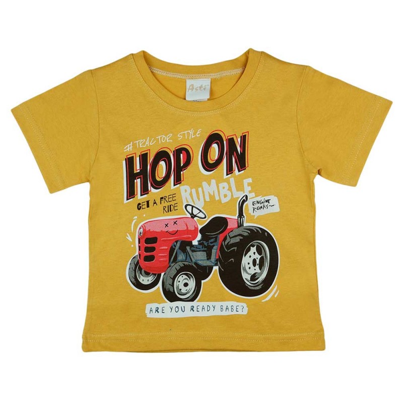 A kisfiúk kedvenc játékával, a traktorral díszített, rövid ujjú pólónkat ajánljuk a vidám, aktív napokhoz. A pólón szereplő traktoros minta garantáltan mosolyt csal a kicsik arcára, miközben a 100% pamut anyag gondoskodik a bőrük megfelelő légáteresztéséről és kényelméről. A sárga szín pedig még vidámabbá teszi a napot! A póló minőségi magyar termék, melyet a hazai Andrea Kft. gyártott. Az I. osztályú minőség pedig biztosítja, hogy a termék hosszú ideig viselhető marad, bármennyi móka is vár még rá. Traktorozzunk együtt a minőséggel és a stílussal!