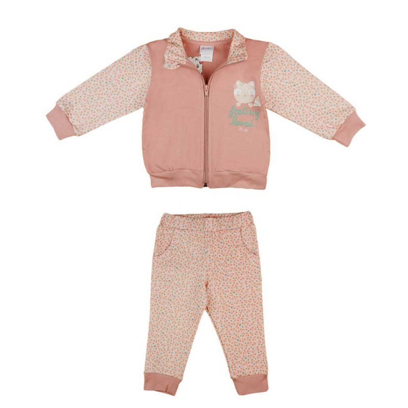 A cicás mintával ellátott, púderszínű szabadidő szett tökéletes választás kis hercegnődnek! A két részes szettben található elöl cipzáros pamut felső és az oldalt zsebes, gumis derekú pamut nadrág kombinációja biztosítja a mindennapi kényelmet és praktikumot. A kiváló minőségű, 90% pamutból és 10% elasztánból készült ruhadarabok garantálják a tartósságot és időtállóságot. Kényeztesd kislányodat ezzel a cicás mintával díszített szettben, amit a magyarországi Andrea Kft. készített, minőségi I. osztályú termékként. A cicák iránti rajongás és a csinos megjelenés soha nem megy ki a divatból!