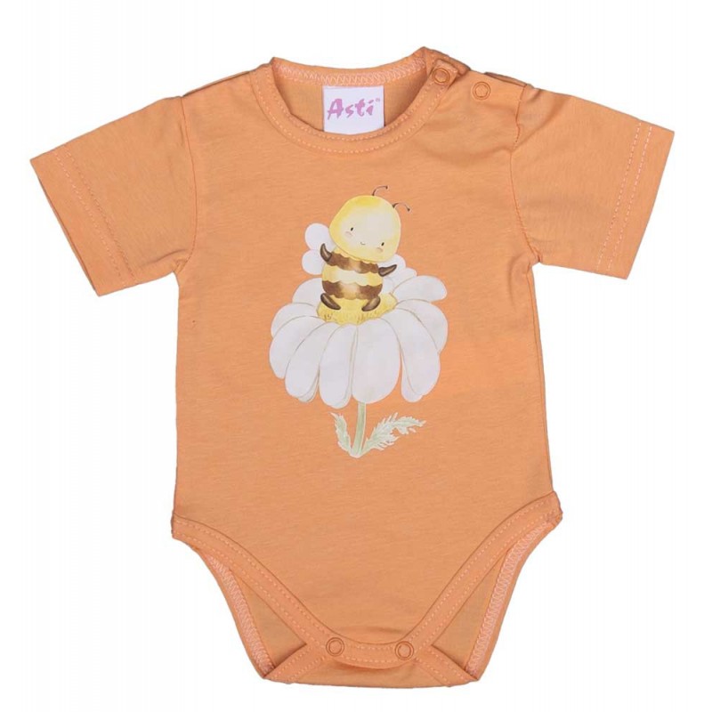 Rövid ujjú baba body cuki Méhecske mintával A barack színű, rövid ujjú baba body bájos méhecske mintával varázsolja még édesebbé kisbabáját. A vidám méhecske minta garantáltan mosolyt csal az arcára minden kisgyermeknek és szülőnek egyaránt. Kiváló választás lehet mindennapi viseletként, hiszen könnyen kombinálható más ruhadarabokkal. A 100% pamut anyagból készült body puha, kényelmes viseletet biztosít a baba érzékeny bőrének, miközben megóvja azt az irritációtól. A termék könnyen tisztítható, nikkelmentes patenttal készül, így az erre érzékeny babák bőrét sem irritálja. Válaszd ezt a minőségi magyar terméket, amely első osztályú minőségben készült, és öltöztesd babádat a legjobbba! Minőségi magyar termék Anyaga: 100% pamut, Minőség: I. osztály