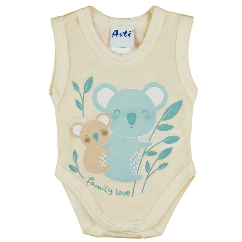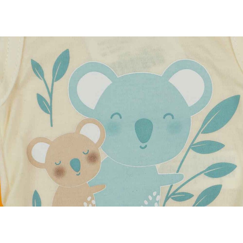 Ez a gyönyörű, ujjatlan baba body a természet szerelmeseinek készült, aranyos koalás mintával. Unisex darab, így tökéletes választás kisfiúknak és kislányoknak egyaránt. A natúr színű alapon kiválóan mutat a koala minta, amely különösen jól illik a babák bájos és játékos természetéhez.