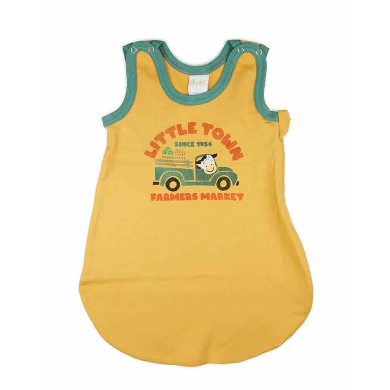 A minőségi, okker színű, bocis mintával nyomott ujjatlan hálózsák ideális választás a melegebb évszakokra. A 1 TOG értékű, vékony pamut anyagból készült hálózsák biztosítja a kényelmet, miközben a babánk hőháztartását is szabályozza. Oldalt cipzárral és vállon lévő patenttal rendelkezik, így könnyen felvehető és levehető. A cipzár és a patent nikkelmentes, így az erre érzékeny babáknál sem vált ki allergiás reakciót. 100% pamut anyaga miatt kiválóan szellőzik és kényelmes viseletet biztosít. Ez a termék az Andrea Kft. minőségi magyar terméke. A táblázat segítségével könnyedén kiválaszthatja a hőmérsékletnek és az időjárásnak megfelelő hálózsákot.