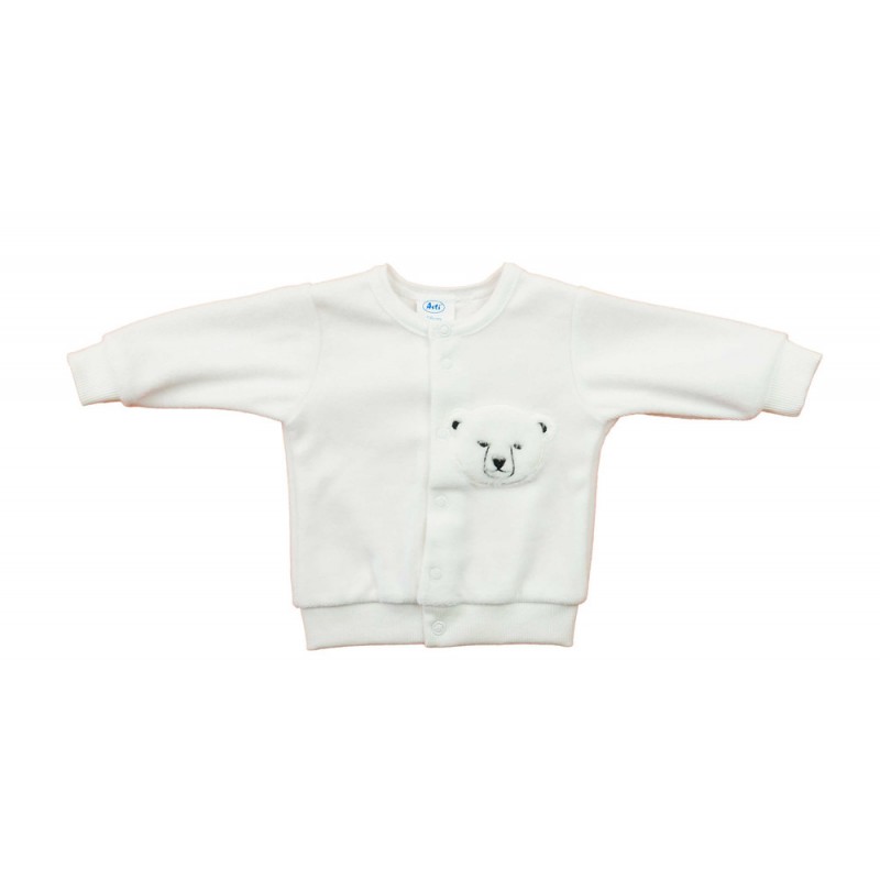 Plüss baba kocsikabát jegesmedvés mintával Aranyos és praktikus választás a hűvösebb napokra! Ez az elöl patentos, plüss kocsikabát bájos jegesmedve mintával díszítve nemcsak trendi, hanem kényelmes is. Könnyen kombinálható a baba ruhatárának más darabjaival, így ideális alapdarab őszi-téli sétákhoz. Minőségi, szín- és formatartó anyagból készült, amely hosszú ideig megőrzi szépségét. Az I. osztályú minőség garantálja, hogy kisbabád bőre csak a legfinomabb anyagokkal érintkezzen. A nikkelmentes patentnak köszönhetően érzékeny bőrű babák számára is biztonságos. Főbb jellemzők: Plüss kocsikabát jegesmedvés mintával Elöl patentos kialakítás Ideális őszi-téli sétákhoz Anyag: 80% pamut, 20% poliészter Minőség: I. osztály Nikkelmentes patent Magyar termék