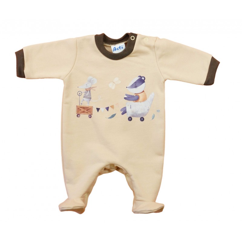 Belül bolyhos, hosszú ujjú baba rugdalózó – Állatos mintával