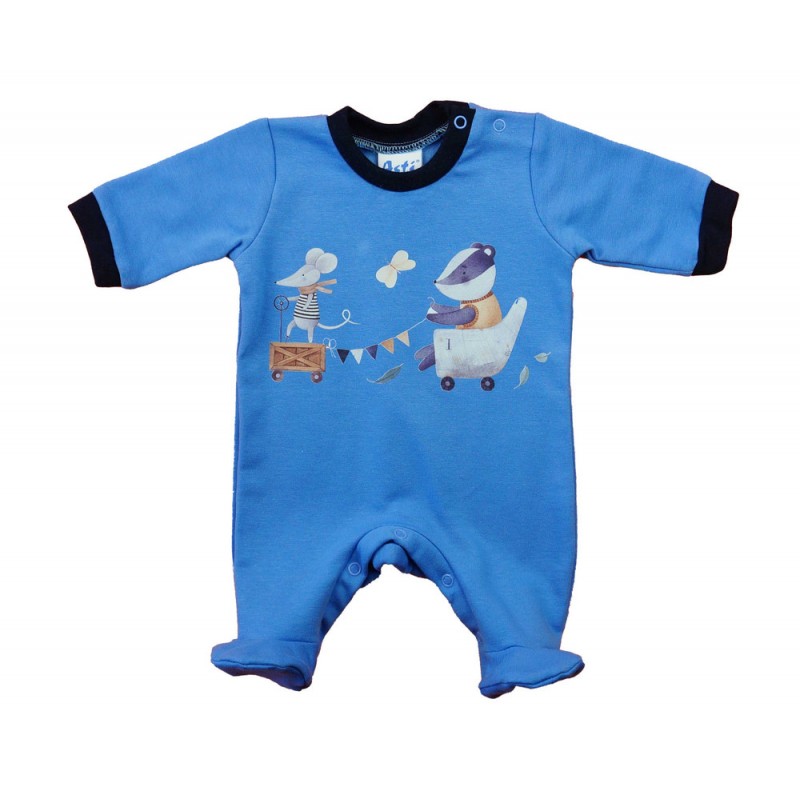 Belül bolyhos, hosszú ujjú baba rugdalózó – Állatos mintával