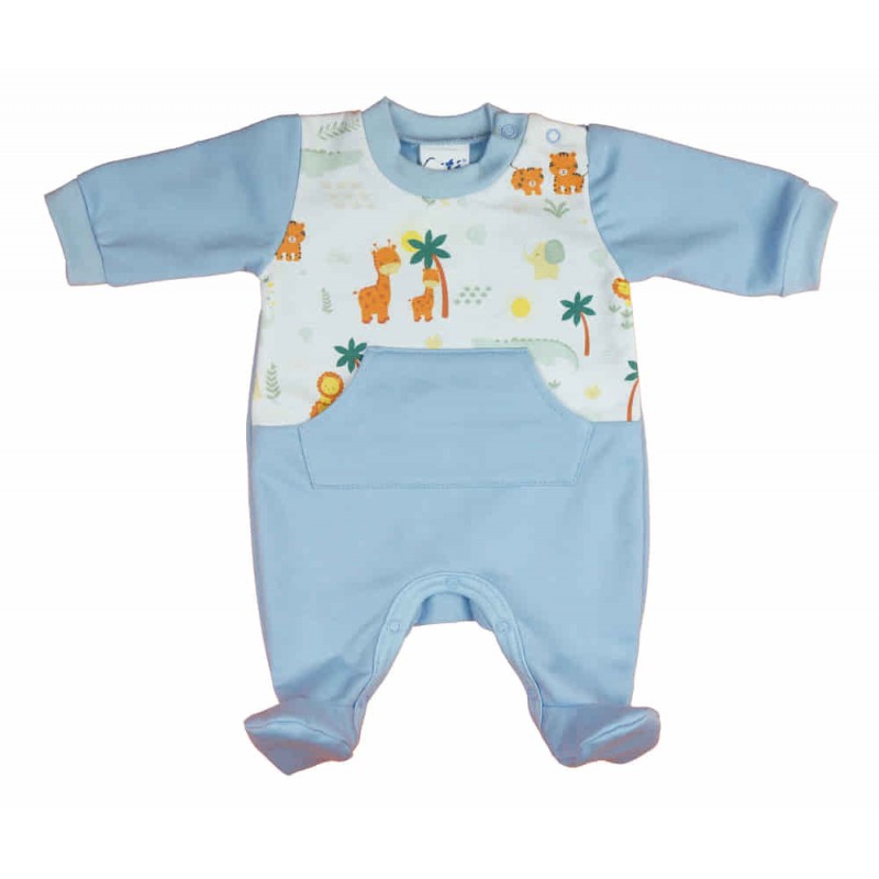 Belül bolyhos hosszú ujjú rugdalózó Szafaris mintával