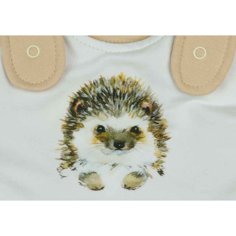 Igazán cuki ez az ujjatlan baba rugdalózó, amely 2 méretes, így együtt nő a gyerekkel - mind a lábrész, mind a kantár része állítható, az elején állat figurás mintával nyomva. Praktikus és kényelmes viselet a babák számára. Kantáros kertésznadrágként is használhatod. A lábközött patentos, ami megkönnyíti a pelenkázást. Akár hosszú vagy rövid ujjú bodyval is feladható. Könnyű, vékony, enyhén elasztikus bababarát pamutból készült, ideális viselet tavaszi napokra.