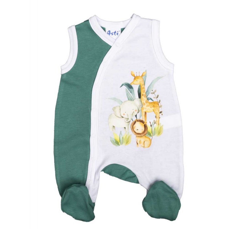 Ujjatlan vékony pamut rugdalózó Szafaris mintával Vagány, zöld színben pompázó, ujjatlan rugdalózónk szafaris mintával egészül ki, amely minden kisbaba gardróbja sztárja lesz! A vékony pamut anyagból készült rugdalózó ideális választás a melegebb napokra, hiszen kiválóan szellőzik és megfelelő komfortérzetet biztosít a baba bőrének. Kifejezetten minőségi magyar termékről van szó, ami garantáltan ellenálló és tartós lesz a sok mosás ellenére is. A rugdalózó 100% pamutból készült, ami az I. osztályú minőséget képviseli, így nem csak szép, de rendkívül kényelmes is a kicsik számára. Nikkelmentes patenttal lett ellátva, így az erre érzékeny babák sem fognak allergiás reakciót tapasztalni. Engedje, hogy babája a nap minden percében kényelmesen és stílusosan érezze magát ebben a cuki rugdalózóban! Minőségi magyar termék Anyaga: 100% pamut, Minőség: I. osztály