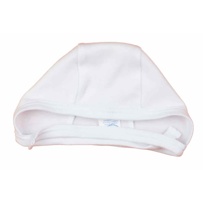 Puha, 100% pamutból készült, fehér megkötős sapka, amely kiváló minőségű és kényelmes viseletet biztosít a legkisebbeknek. A gyönyörűen varrott magyar termék nem csak stílusos, de praktikus is, hiszen megköthető, így tökéletesen illeszkedik a baba fejéhez. Az I. osztályú minőség garantálja, hogy a sapka hosszú ideig megőrzi szépségét és formáját. Válassza ezt a magas színvonalú, magyar gyártású babaruhát, hogy csemetéje mindig a legjobban nézzen ki!
