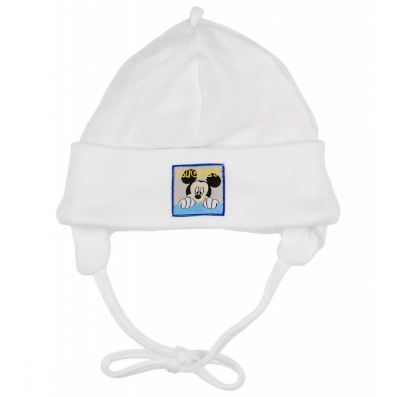 Mickey címkével díszített, megkötős sapka, fülvédővel.