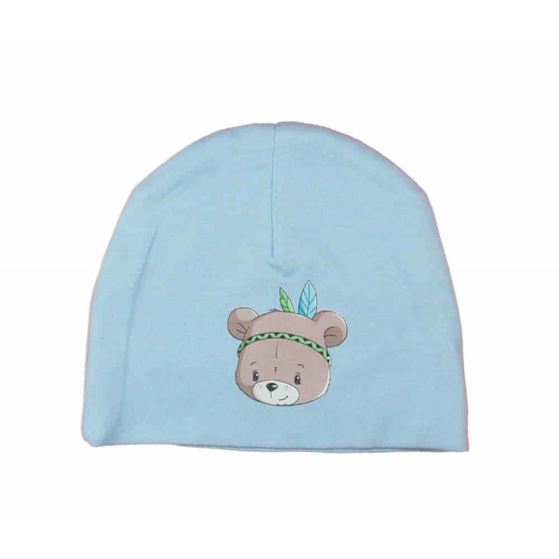 Puha, 100% pamutból készült kisfiú sapkánk világoskék színben, aranyos macis mintával biztosan minden kisfiú kedvence lesz! A vékony, mégis meleg anyagának köszönhetően kiválóan alkalmas tavaszi és őszi sétákhoz, játszótéri játékhoz. A rugalmas kialakításnak köszönhetően tökéletesen illeszkedik a gyermek fejéhez, így nem csúszik le, és kényelmes viseletet biztosít. Ez a minőségi magyar termék első osztályú minőséget képvisel. Érezzék a különbséget és teszteljék a természetességet a gyakorlatban is!