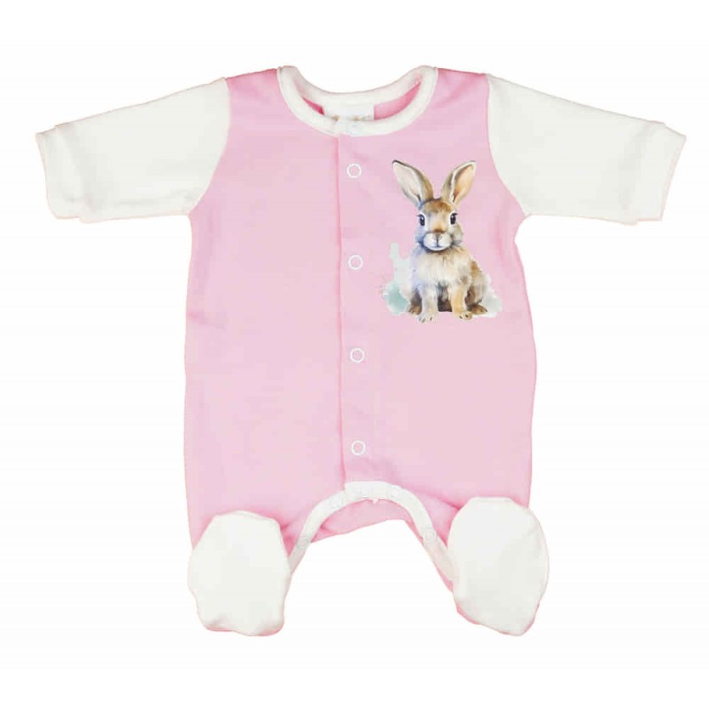 Vékony, pamut, elöl patentos kislány rugdalózó Nyuszi mintával